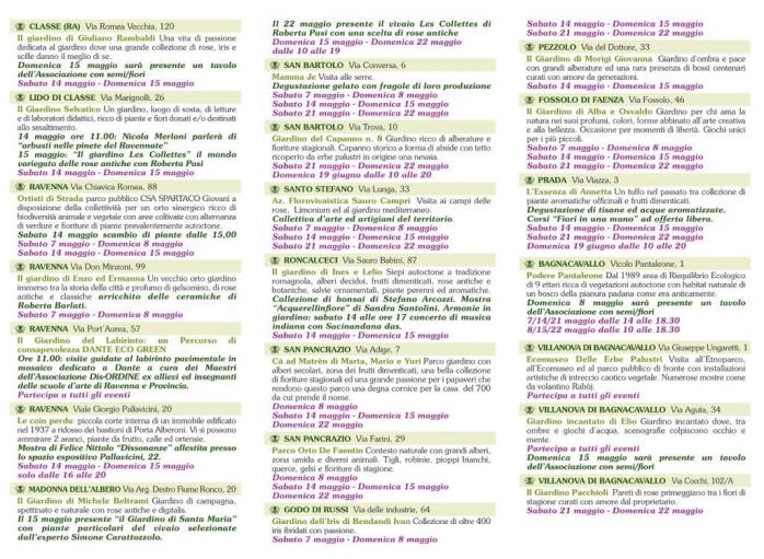 Tantissimi i giardini privati e pubblici aperti che possono essere ammirati e visitati in tutta la provincia di Ravenna con ingresso gratuito. Un’occasione per scoprire e riscoprire dei veri e propri gioielli che sono presenti sul nostro territorio.