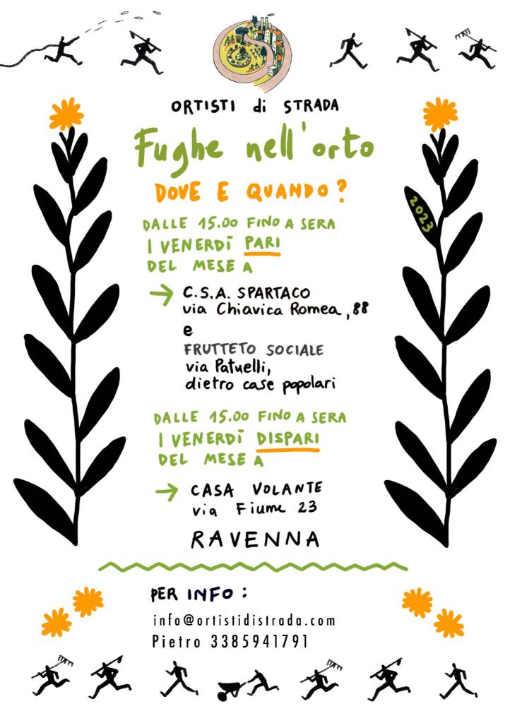 Vi aspettiamo i venerdì pari del mese all’Orto di Spartaco in via chiavica Romea 88 ed al Frutteto Sociale in via Patuelli dietro le case popolari di Acer, mentre i venerdì dispari a Casa Volante in via Fiume 23.