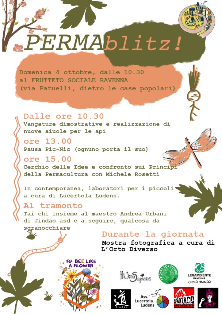 Una giornata all’insegna della Permacultura e della compagnia per progettare e realizzare assieme nuovi spazi del Frutteto e seminare essenze per le api aiutandole grazie al progetto To Bee Like a Flower